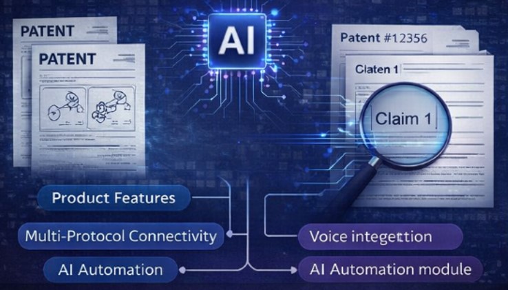 AI models extract structured technical features from product specifications, engineering notes, invention disclosures, and system architecture documents. These structured features form the foundation of large‑scale patent search queries.
