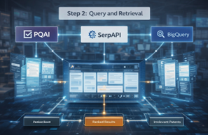 The n8n workflow integrates with patent intelligence sources such as PQAI, SerpAPI, and enterprise patent datasets stored in BigQuery. The workflow retrieves patents across jurisdictions, classifications, and technology domains to ensure comprehensive coverage.